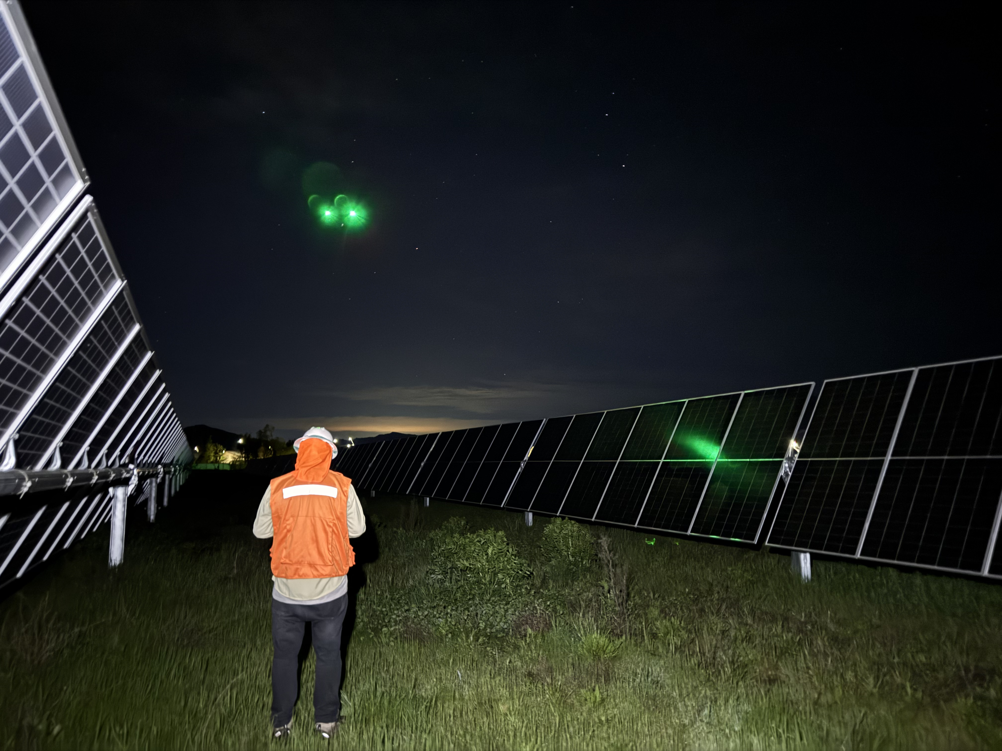 The inspection process begins in the air, where a drone equipped with a specialized camera scans the plant using electroluminescence (EL). Unlike standard visual checks or thermography, EL uses electricity to effectively "X-ray" the solar cells. Functioning cells emit light, while damaged areas appear dark, allowing the system to pinpoint microscopic irregularities and internal defects that remain invisible to the naked eye.