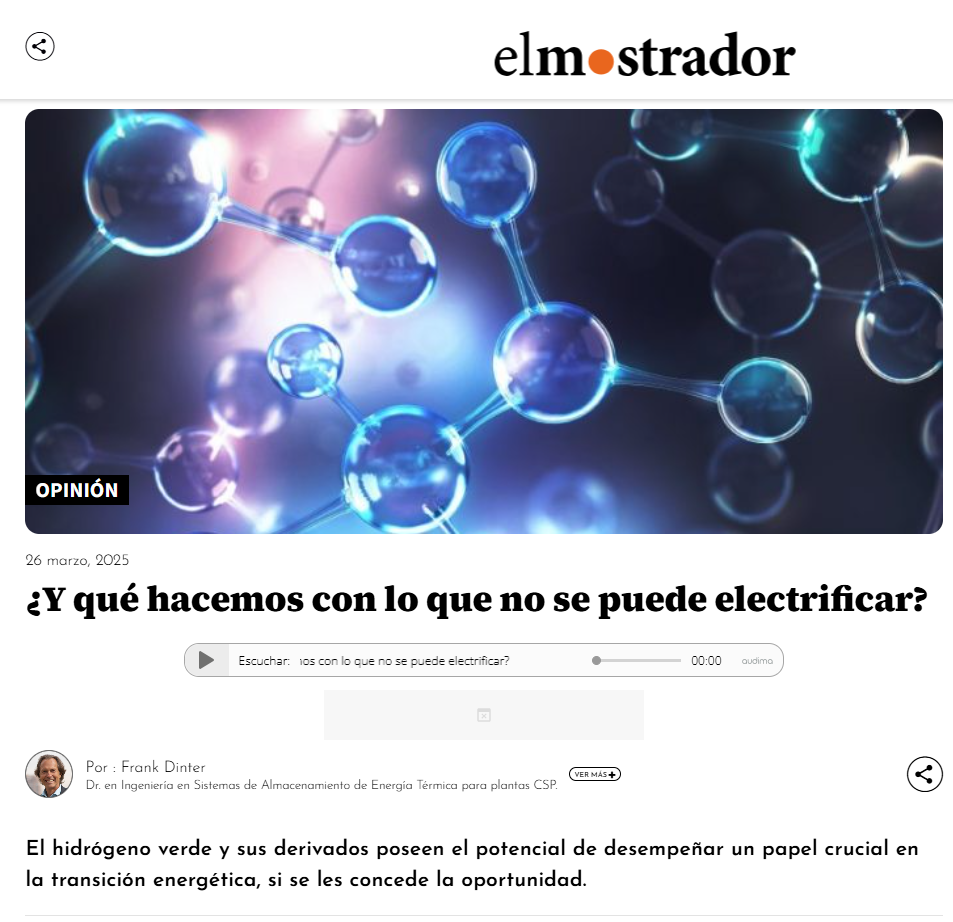 Nuestro director ejecutivo, Frank Dinter, reflexionó en El Mostrador sobre los sectores complejos de electrificar y cómo atender el hidrógeno verde y sus derivados se convierten en una alternativa para solucionar este problema.